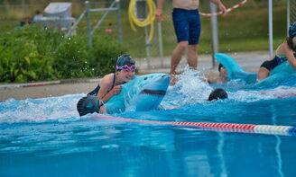 Zum Abschluss des Wettkampfs folgte die Plauschdisziplin. Dabei musste ein Rätsel gelöst werden aus Puzzleteilen, welche am Beckenboden versenkt waren. Die Lösung gab den Namen des Haifischs an, welcher vom Team gerettet werden musste.