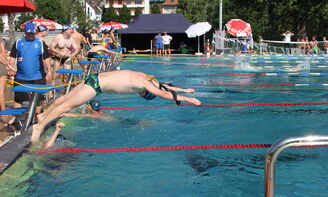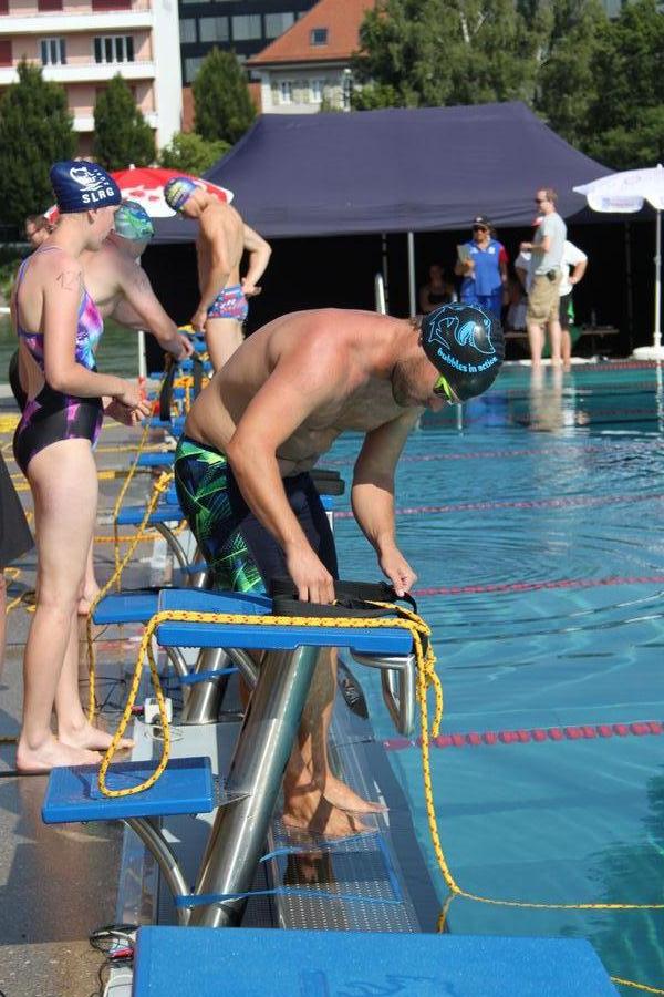 Dies hat sich gelohnt! Schon das Freibad direkt an der Aare war mit den spektakulären Rutschbahnen und dem Aare-Schwumm ein Highlight. Dazu kam, dass der Wettkampf mit je drei Läufen bei den Damen (21 Teams) und bei den Herren (22 Teams) sehr unkompliziert und kompakt ablief. Die Disziplinen waren mit jenen der Schweizermeisterschaften identisch, bis auf das weggelassene Hindernisschwimmen (https://www.slrg-weinfelden.ch/wettkeampfe.html).