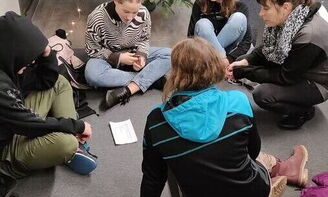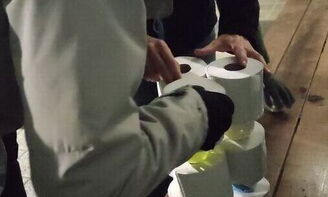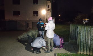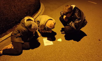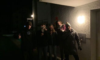 Während die einen mit vorgegebenen Wörtern und Gegenständen zB. einem WC-Bäseli einen Sketch vorbereiteten, machte sich die erste Gruppe auf den Weg. Es galt, die auf einer Karte eingezeichneten Punkte abzulaufen und der zweiten Gruppe den Weg zu markieren. Natürlich extra mit vielen falschen Fährten, wobei die Kreativität je länger es ging, nachliess.
