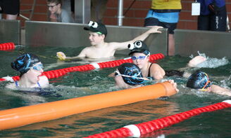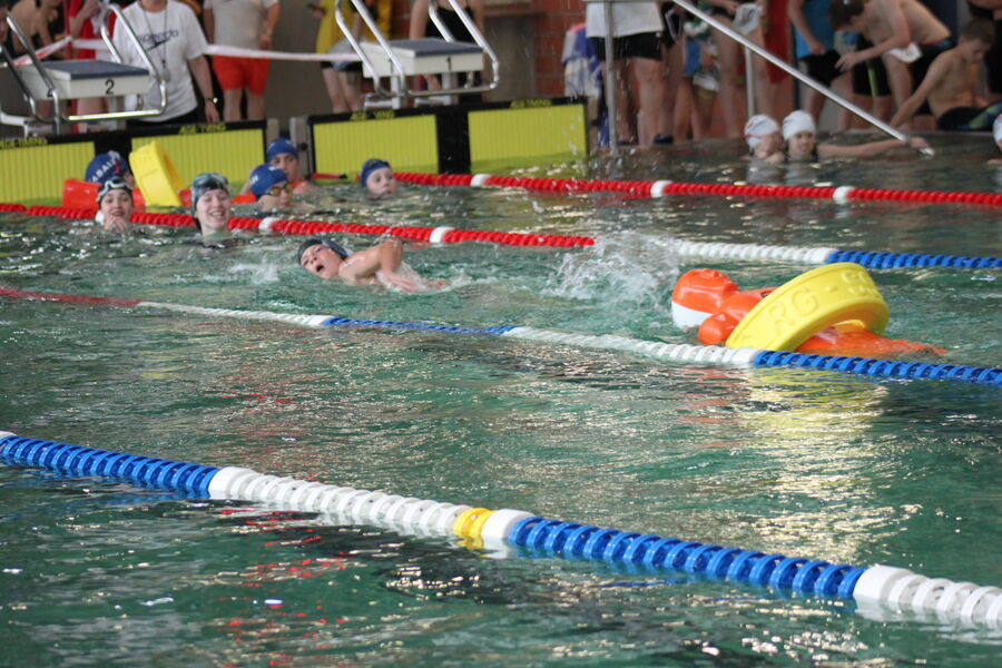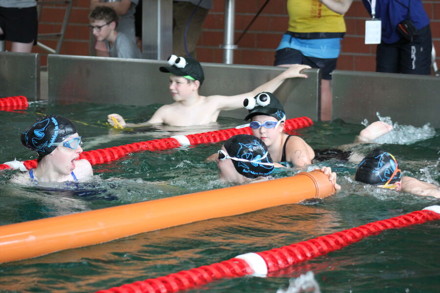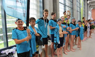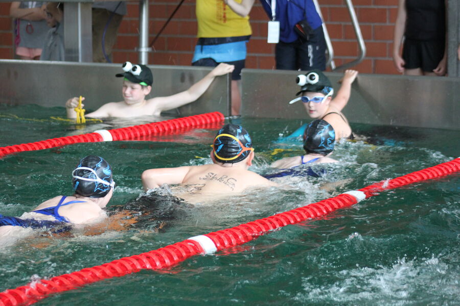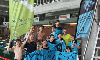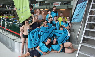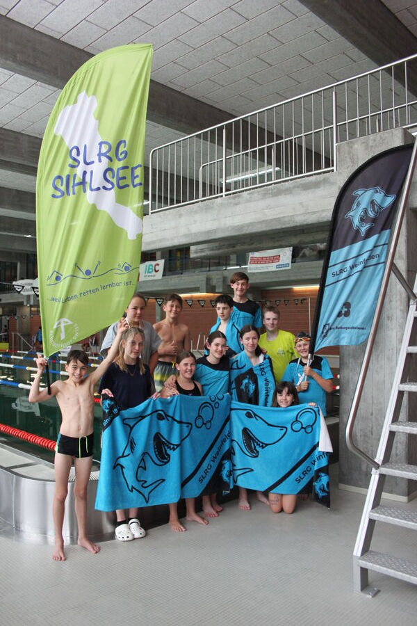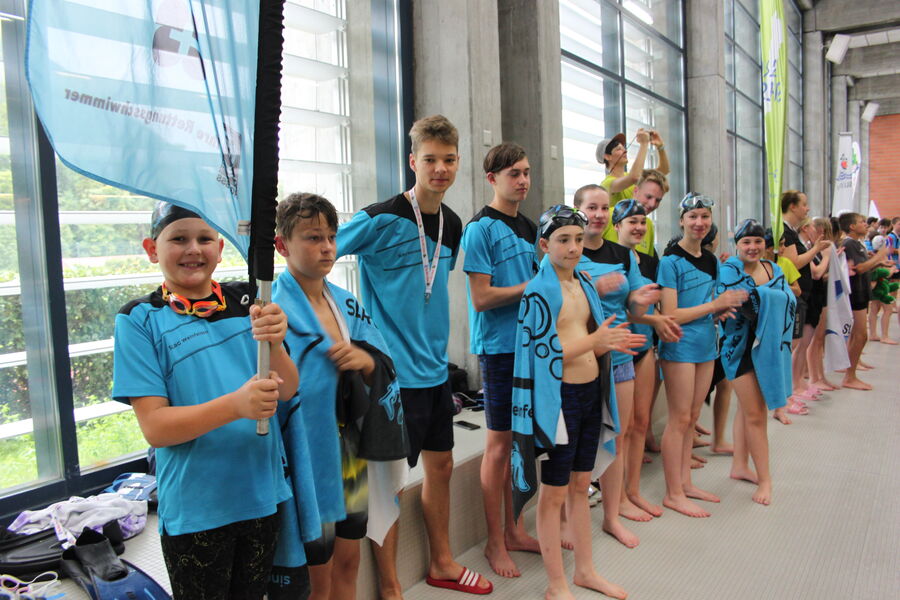 Als letzte offizielle Disziplin folgte die Rettungsstaffel. Die 5kg Ringe hingen zum Glück an einem Seil bei ca. 1.8m und lagen nicht in über 3m Tiefe auf dem Beckenboden. Auch die Gurtretter konnten von allen Kids erfolgreich um die halb gefüllten Puppen geschnallt werden. Unsere Teams gaben nochmals Vollgas und holten sich sogar Rang 6!