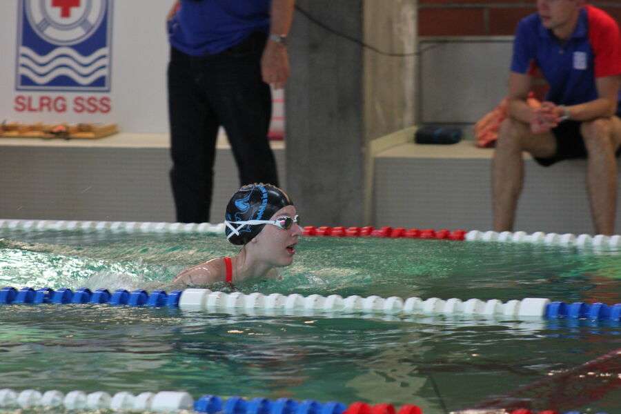 Nach der gemeinsamen Zugfahrt erkundeten wir das Bad und richteten uns in der Turnhalle ein. Um 11 Uhr ging es los mit der Puppenstaffel. Die anfängliche Nervosität war schnell verschwunden. Nach dem Mittagessen ging es weiter mit der Gurtretterstaffel. Speziell dabei war die Wende mit Gurtretter und Rettling, da der Wettkampf in einem 25m- Becken stattfand und nicht wie meistens in einem 50m Becken.