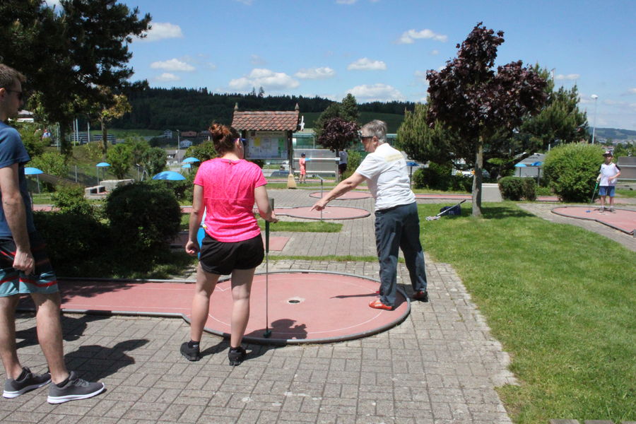 Ein weiterer Sportblock folgte noch vor dem Mittagessen. Am Nachmittag ging es für die meisten Gruppen im Hallenbad weiter, die Jugend durfte mit Simon noch zum Minigolf.